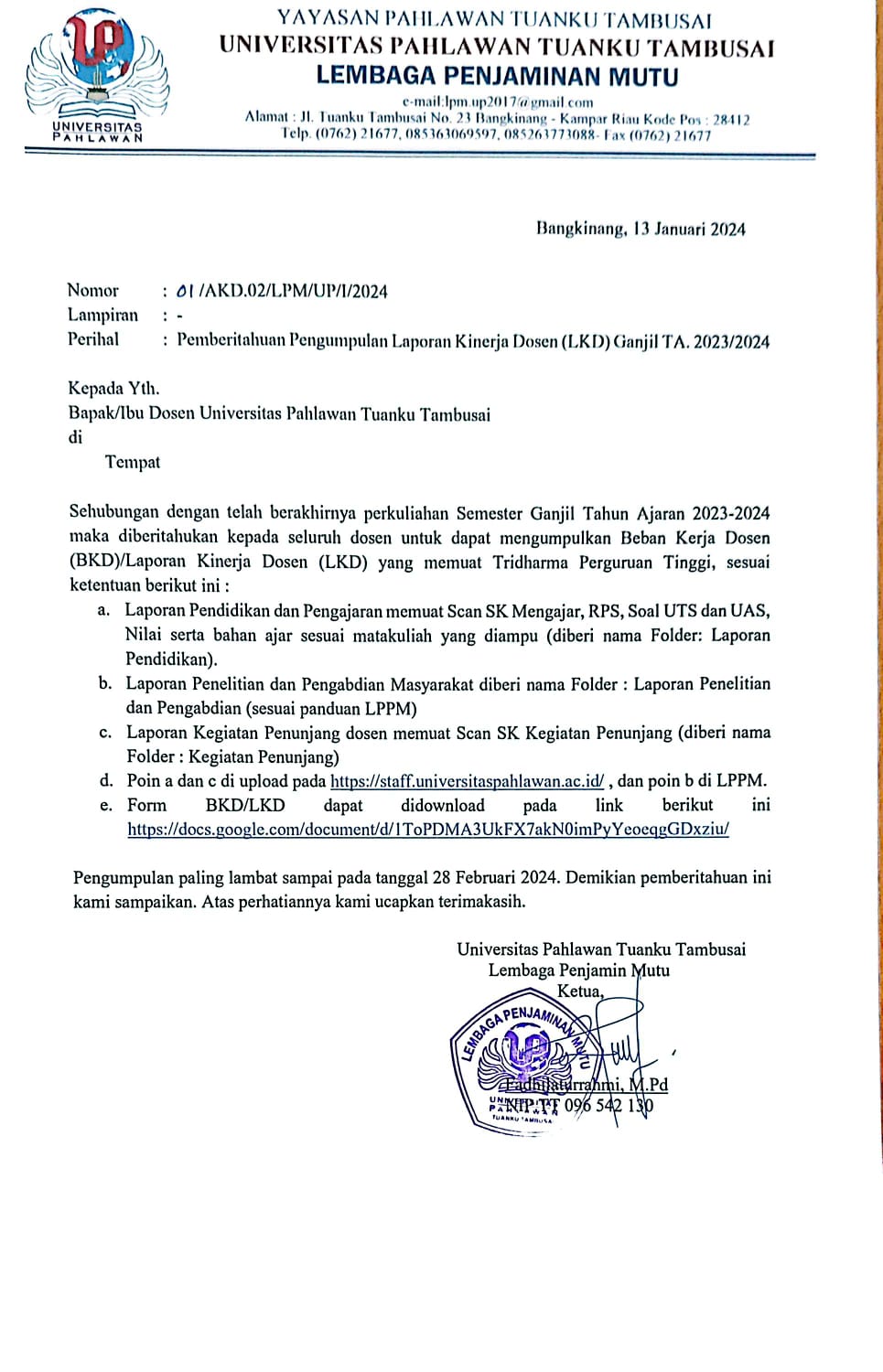 Assalamualaikum Bapak dan Ibu Dosen di Lingkungan Universitas Pahlawan Tuanku Tambusai, Berikut k...
