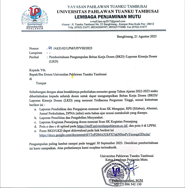 Universitas Pahlawan, 24 Agustus 2023 - Telah terlaksanakan Kegiatan Sosialisasi Dokumen SPMI UPT...